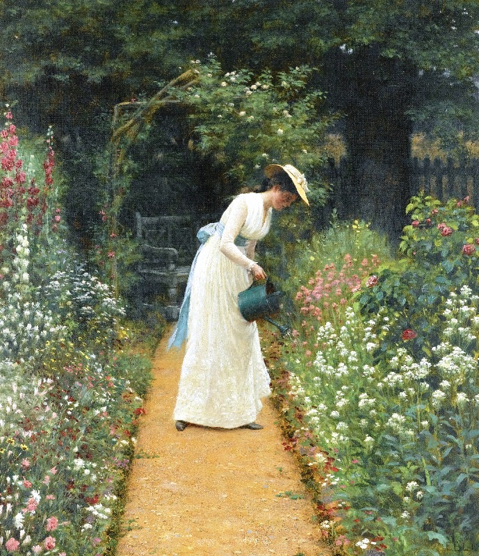Your oil painting reproduction of "My Lady's Garden" by Edmund Blair Leighton will be handmade to replicate all the brushstroke details, colors, and shading of the original work of art. Please be assured that you will receive a magnificent oil painting.